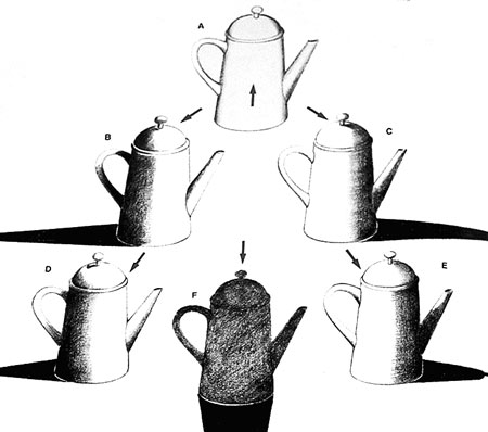 The shape of the object that stands between the light source and the soil determines the shape of the shadow. The tonal variety also depends of the shape and the reflections it receives.